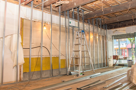 具体的には、間仕切りの壁や、クロスの貼り付け、建具の取り付けから天井や床の貼り付けなどを行っていきます。 また、店舗になるとそこへ水道やガス、電機などの設備工事も入ってきます。 内装工事は、そういった専門分野の工事をすべて行うことができる仕事となっています。